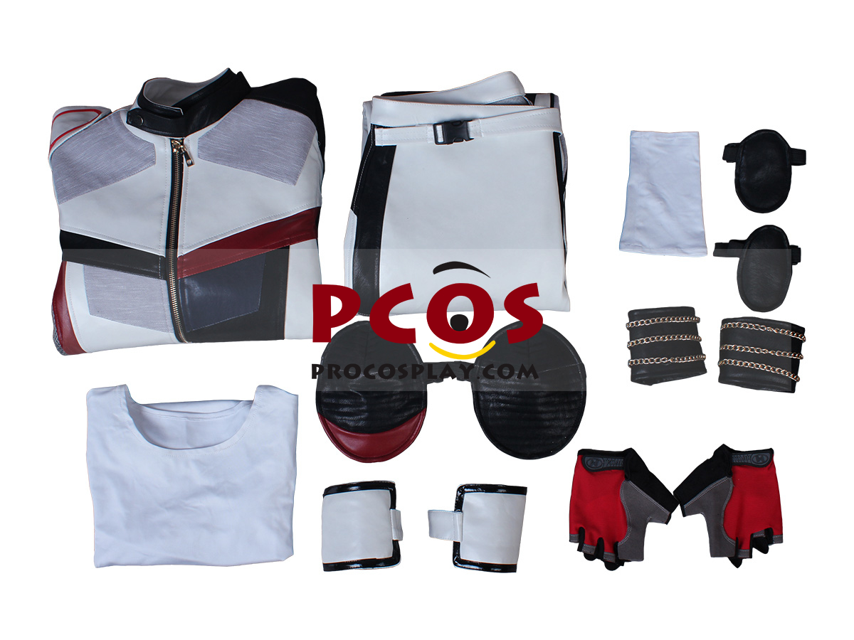 Includes:A jacket A top A pair of pants A pair of knee pads A pair of black armguards A pair of white armguards A pair of wrist straps A pair of gloves A handguard Material:Imitation leather, double mesh composite fabric, stretch knitting, composite thick leather, patent leather Size: All size