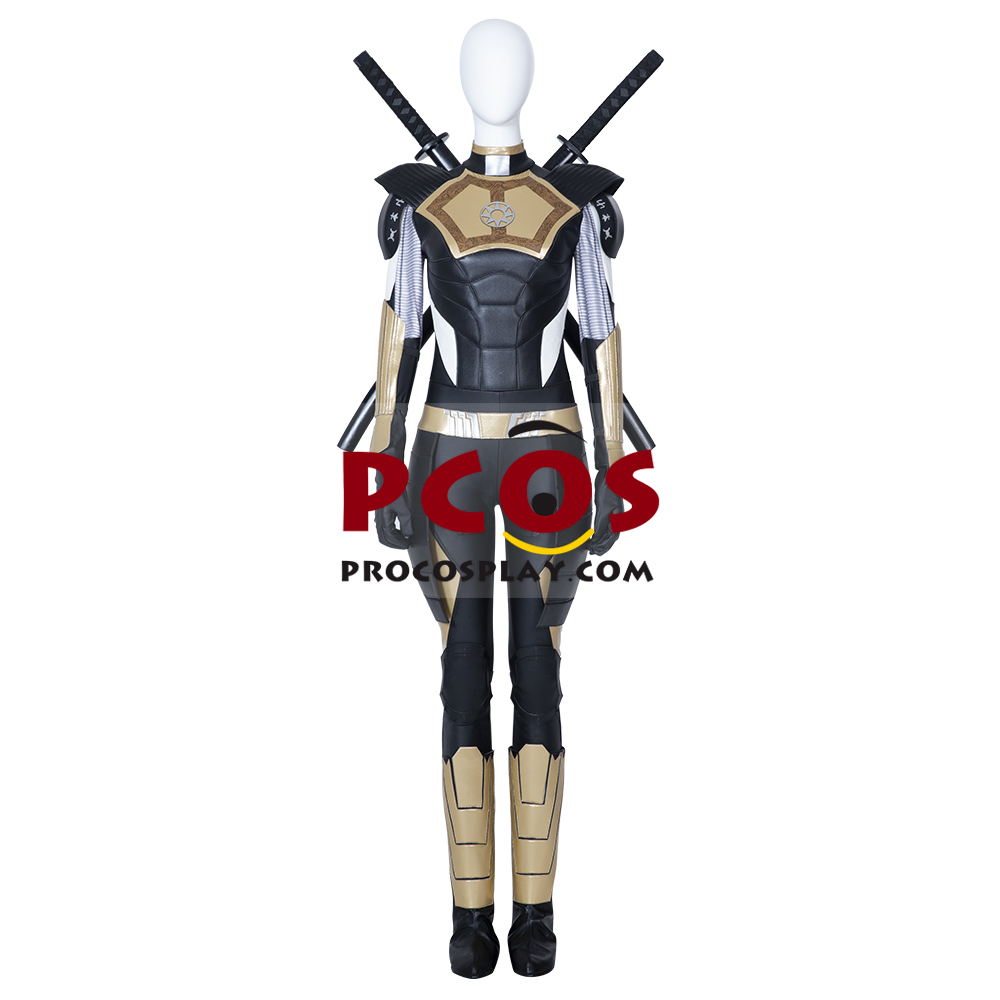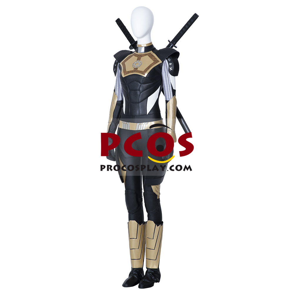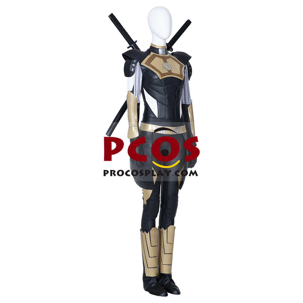 Includes: Bodysuit, shoe covers, knee pads, belt, wrist guards, shoulder pads, sword bag, gloves Material: Thin spandex, fur, composite leather and so on Size: Female XS – XXXL, custom size Tip: The swords are for photograph only.