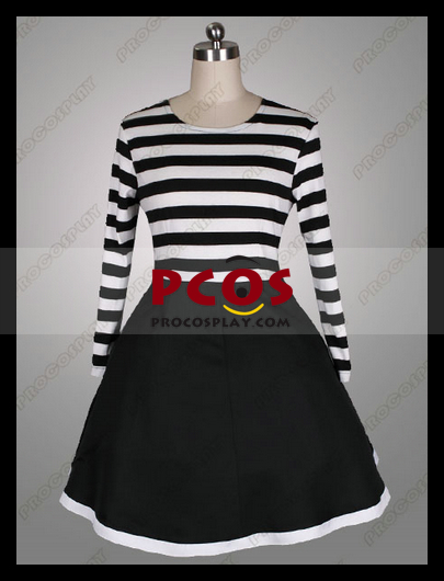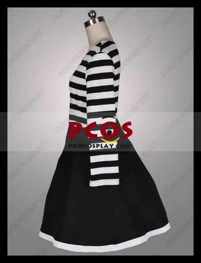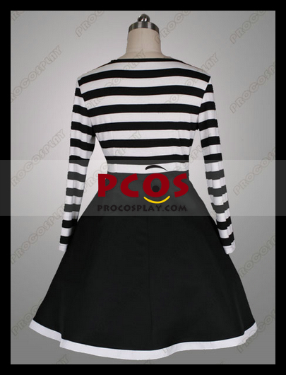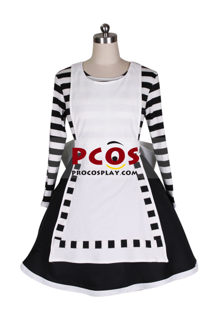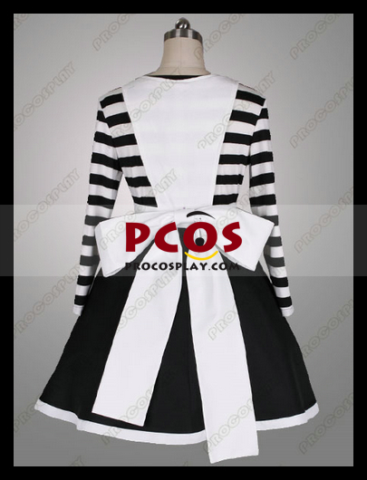 *The promotional products cannot be returned or changed once sold. Alice Madness Returns: London Dress Coplay Costume includes A striped, black-and-white long-sleeved shirt A black uniform cloth skirt A white uniform cloth apron A pair of stretch cotton stockings A large white bow-knot A silver alloy necklace